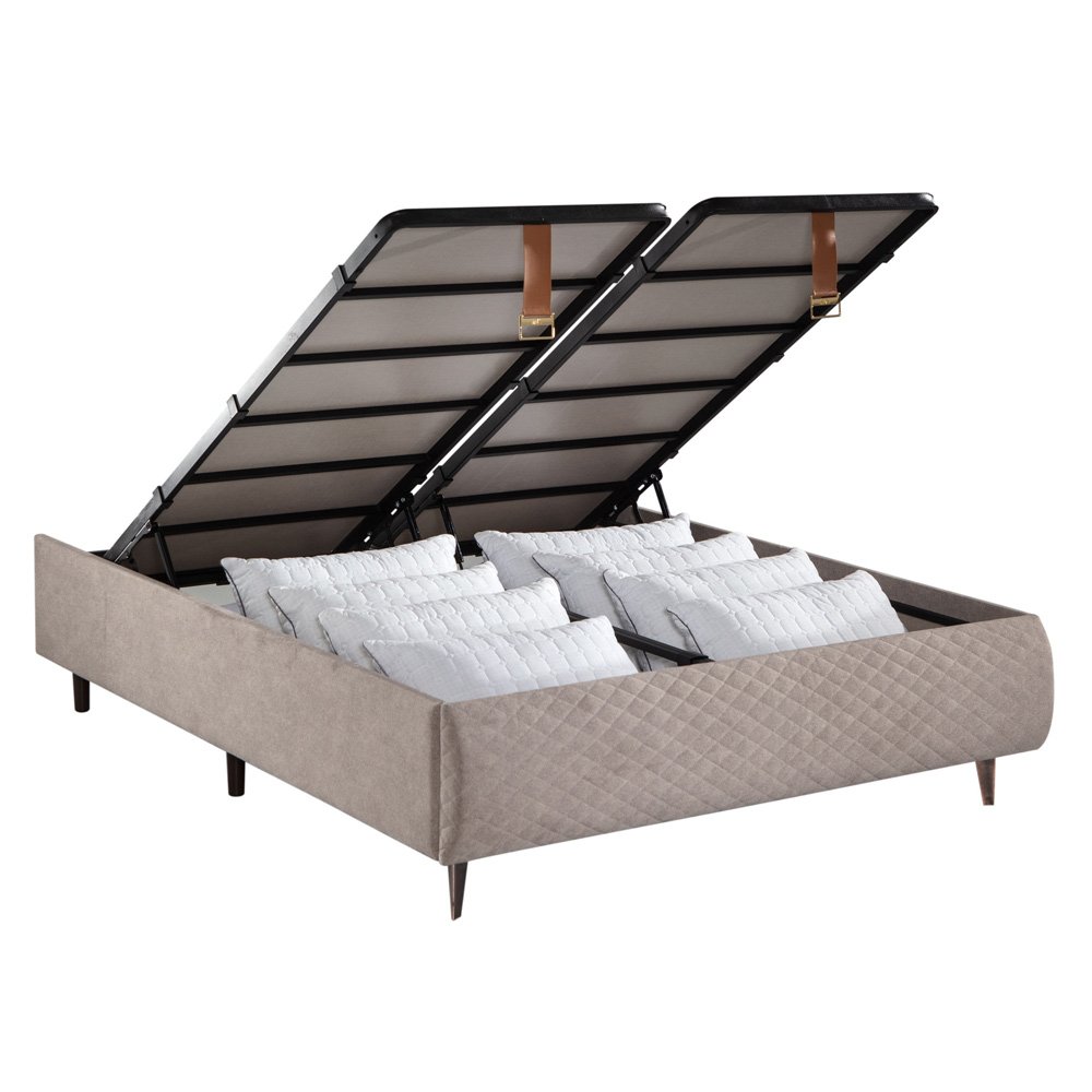 Hava sirkülasyonuna imkan veren kolay temizlenebilir dekoratif ve dayanıklı ahşap taban ve kapak. Dayanıklı ve paslanmaz ve ses yapmayan özel tasarlanmış çelik konstrüksiyon. Mekanlarda kolay temizlik imkanı sağlayan yüksek ve dekoratif ayaklar. Derin depolama alanı. İç derinlik 24 cm, Yükseklik 28 cm Emniyet kilitli ve baza’ nın kolay açılıp, ani kapanmasını engelleyen özel amortisör sistemi Fonksiyonel özel makas mekanizması. Yatağın kaymasını önleyen destek plastikleri. Havuzlu bazalar da yatak destek boşluğu. Baza’ nın kolay açılmasını sağlayan dekoratif kulplar ve dengeleyiciler. Baza kapağını destekleyen özel plastik bağlantı aparatları. Baza’ nın orta kısmında bulunan ilave gizli destek ayakları.